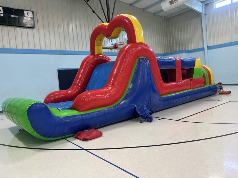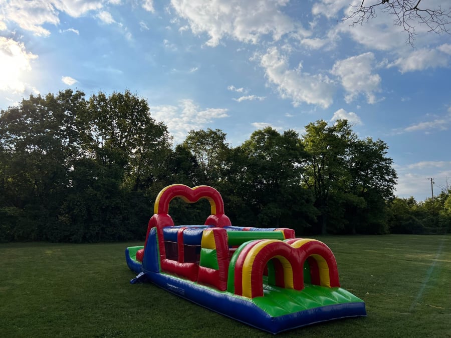 Did someone say 32 Ft of fun ?! Get the party rocking with our 32 ‘ Fun Run Obstacle Course . This Inflatable is a hit at any backyard party , event , or festival . Opponent’s battle head to head to see who can complete the obstacle course the fastest ! They will enjoy themselves while also getting exercise through a variety of enjoyable pop-ups , tunnels , & a rewarding slide at the end .