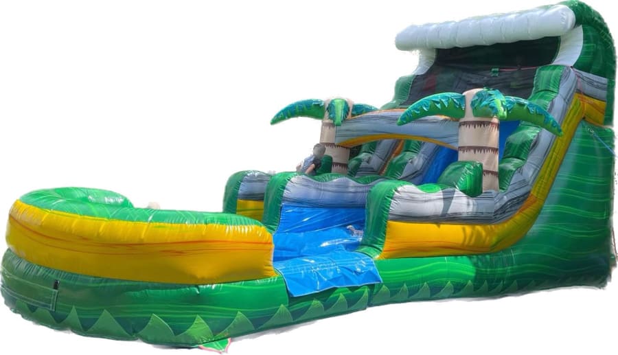 Make a splash at your next event with the 14ft Tropical Blast Slide! Contact us today to reserve this thrilling attraction and take your party to new heights!