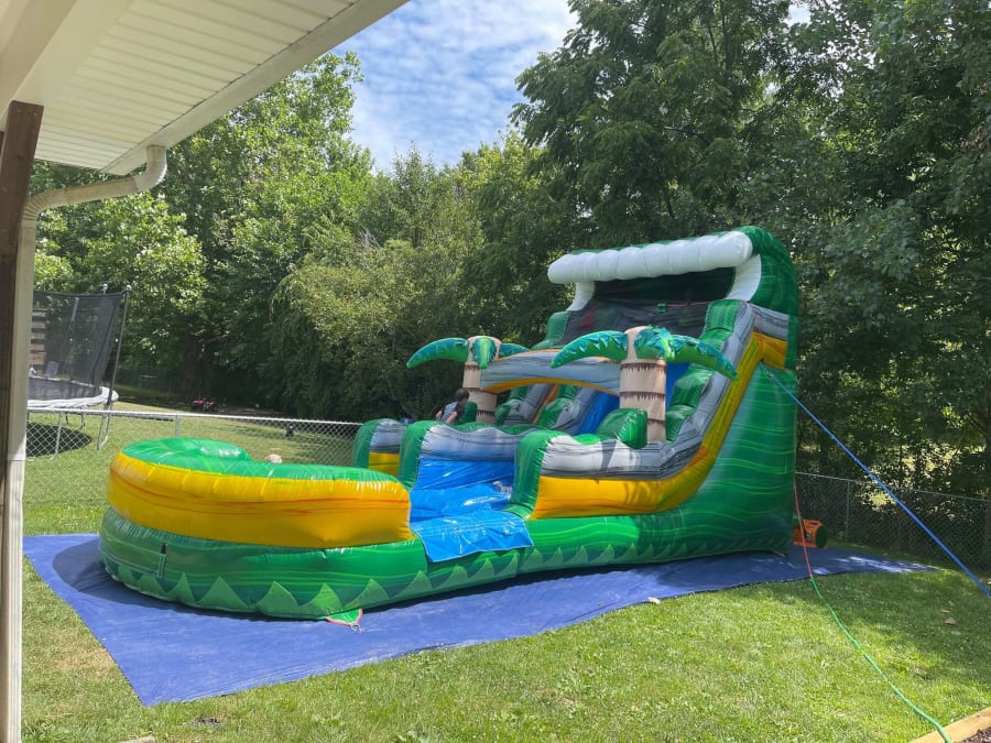 Ideal for backyard parties, community events, or any celebration, our 14ft Tropical Blast Slide guarantees hours of entertainment and unforgettable memories. Watch as children and adults alike embrace the spirit of adventure and indulge in the sheer delight of sliding down this tropical oasis.